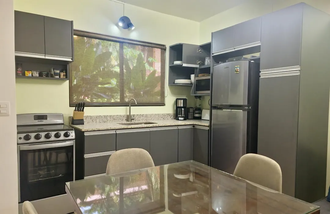 Une cuisine complète où vous trouverez un micro-ondes, une bouilloire électrique et un réfrigérateur pour cuisiner. Vous pourrez déguster une cuisine costaricaine à Café de Playa, situé dans une zone de 500 mètres. La villa dispose d'une terrasse pour se détendre après une journée bien remplie, ainsi que d'une piscine privée.
